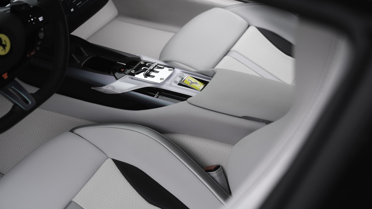 Bespoke elements continue throughout the cabin, from a customised key to tailored luggage and discreet design references on functional components. Even the brake callipers and shift paddles carry subtle treatments that link back to traditional craft techniques. Yet nothing feels overworked. Ferrari’s familiar balance between motorsport minimalism and grand touring comfort remains intact, ensuring the driver’s focus stays where it should — on the road.
